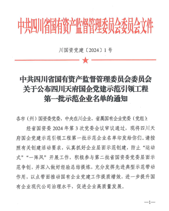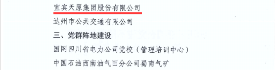 2月5日,中共四川省國有資產(chǎn)監督管理委員會(huì )委員會(huì )發(fā)布《關(guān)于公布四川天府國企黨建示范引領(lǐng)工程第一批示范企業(yè)名單的通知》,天原集團從全省200多家申報企業(yè)中脫穎而出,成功入選四川天府國企黨建示范引領(lǐng)工程第一批示范企業(yè),是宜賓市唯一獲“黨建品牌建設示范企業(yè)”的單位,在全省市(州)企業(yè)中僅2家。