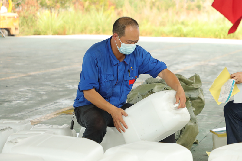 全力以赴,保供抗“疫”?!跋氲谝?、爭第一、干第一、我就是第一”是他的座右銘。自宜賓疫情發(fā)生以來(lái),在支部“紅色動(dòng)員令”的號召下,正值休假的他主動(dòng)“請戰”,不分晝夜全身心投入到次氯酸鈉消毒原液生產(chǎn)配制中,現場(chǎng)叉車(chē)不夠,他帶領(lǐng)運行班組人工搬運上車(chē),手上磨起泡也依舊堅持,短短二天時(shí)間完成了22100千克消毒原液生產(chǎn)任務(wù)?,F江安片區已解除閉環(huán)生產(chǎn),但他依舊堅守在崗位,有序推進(jìn)公司生產(chǎn)計劃。